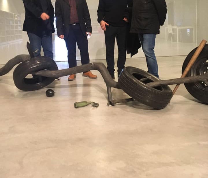 In the middle of the exhibition venue stood a pile of objects that looked like burnt tree trunks, a safe, shoes and tires and so on. In the written description of the work, the June Fourth incident was mentioned.