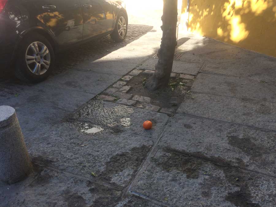 橙只是從美術館外空地上的樹上撿的。那時剛好是城內街上的橙樹結果的時侯。